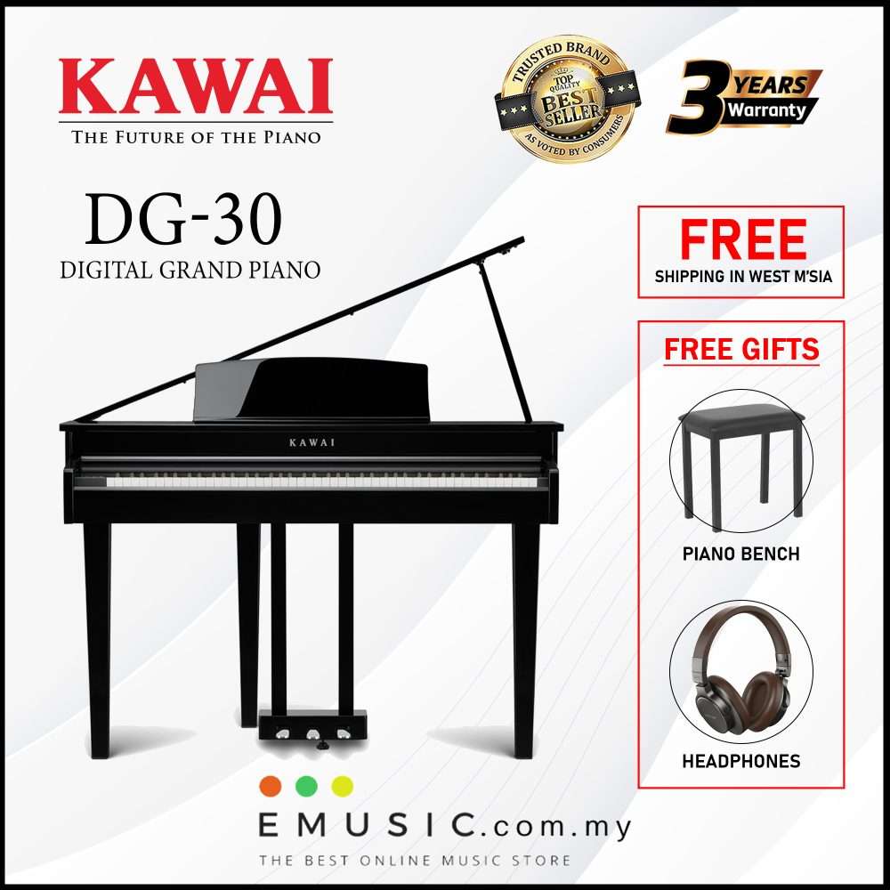 - A modern digital piano that leaves a grand impression – this is the bold concept behind the new DG30. This striking instrument combines Kawai’s authentic digital piano keyboard and sound technologies and marries them with a contemporary grand piano-like cabinet, finished in luxurious ebony polish. Like a piece of fine furniture, the DG30 will surely complement the interior of almost any room, while its compact size and shape allows this impressive instrument to occupy less space than even the smallest baby grands.