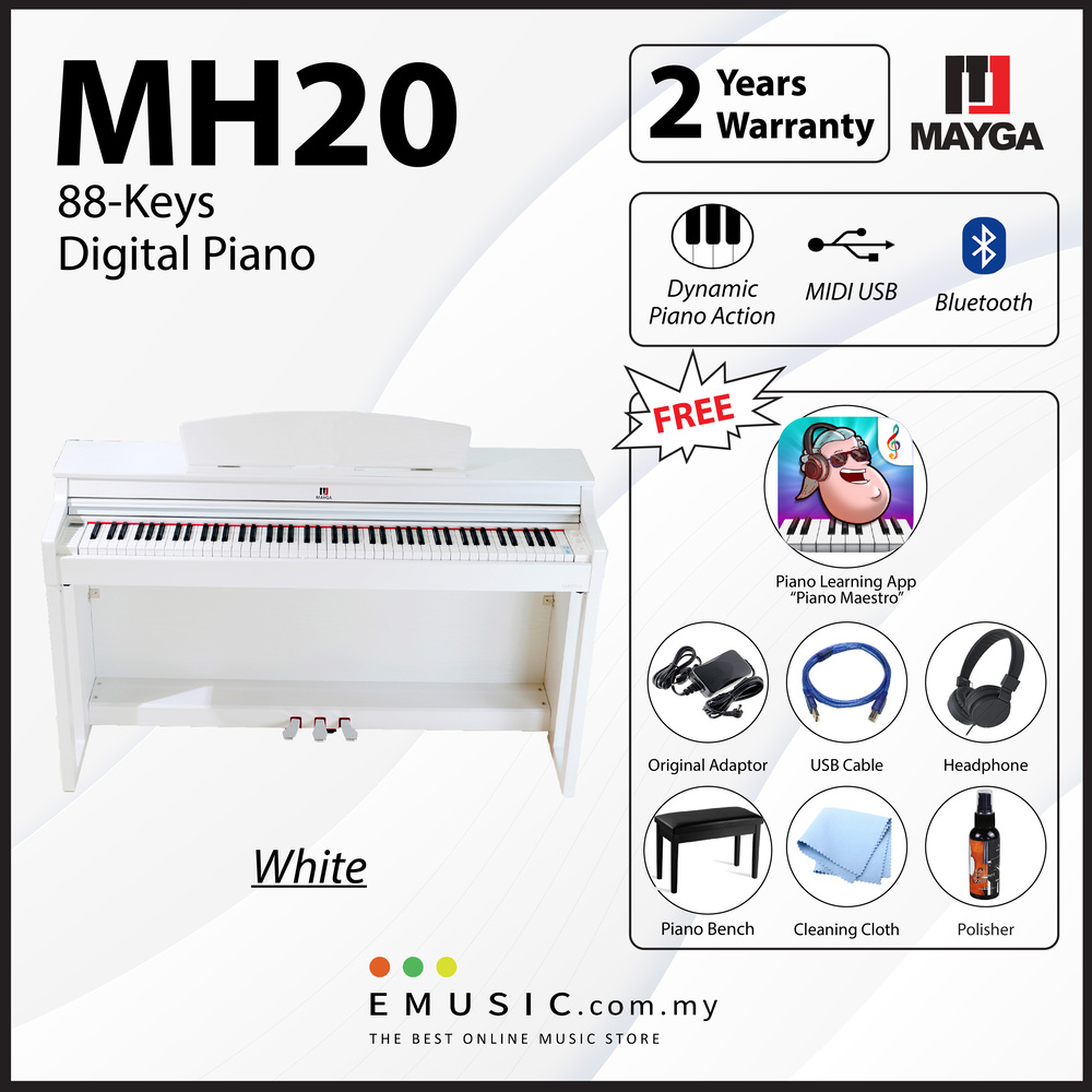 Demo songs: 100 demo songs, including classic piano songs, voice demo, rhythm, percussion, and 20 demo Czerny compositions