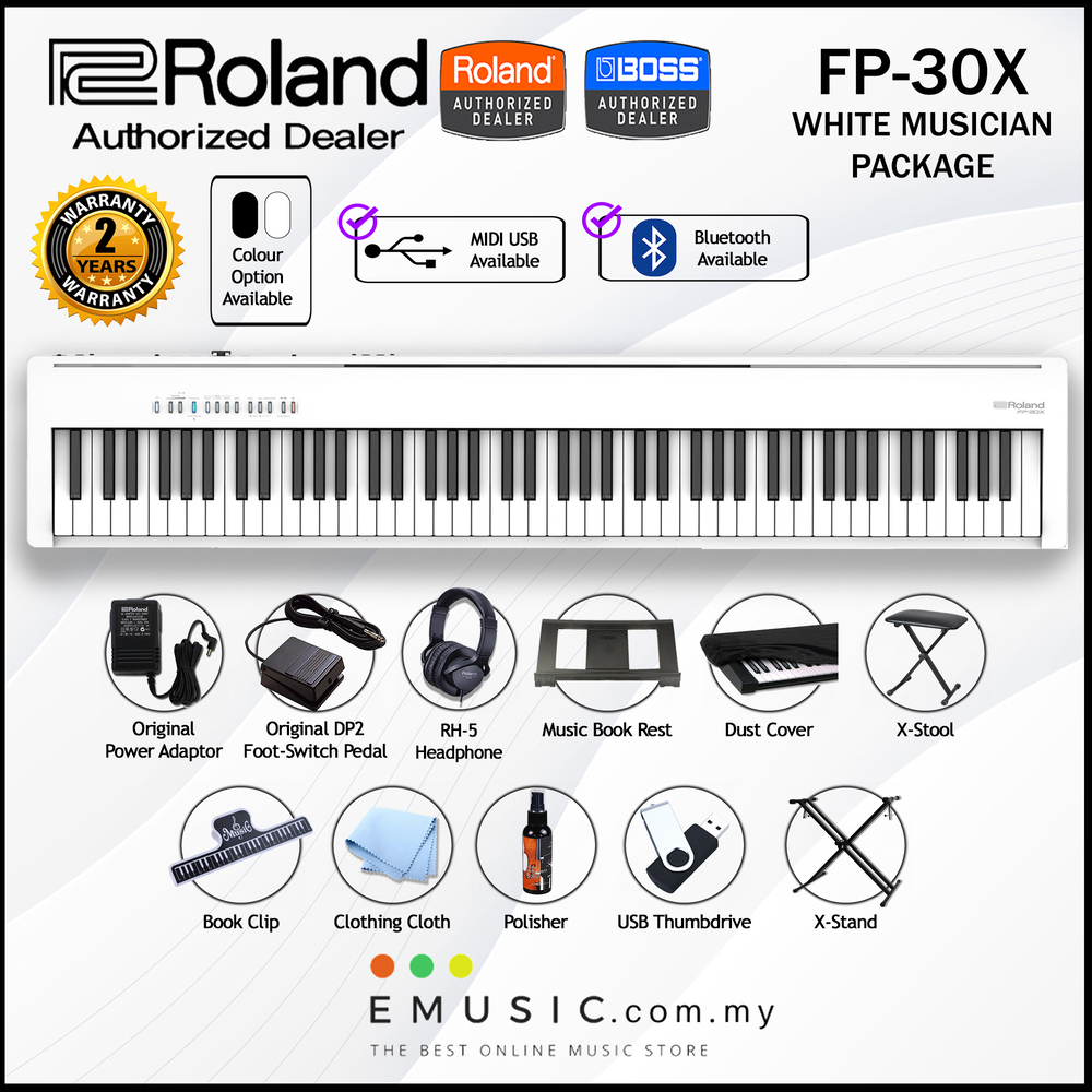 The FP-30X keeps you focused on long-term learning with advanced connectivity. Use Bluetooth audio and your iOS or Android device to stream music through the piano speakers or headphones, play along with favorite artists, and sharpen up your skills by following online piano lessons. Take things further and use Bluetooth MIDI to connect to music composition apps like Roland’s Zenbeats or Apple’s GarageBand. And for a regimen that stays fresh, hook up to Roland’s Piano Every Day app to automatically record and playback your daily practice activities using the piano tone of your choice. The FP-30X even features USB audio/MIDI connectivity, allowing you to interface with computers and record tracks in professional music production software.