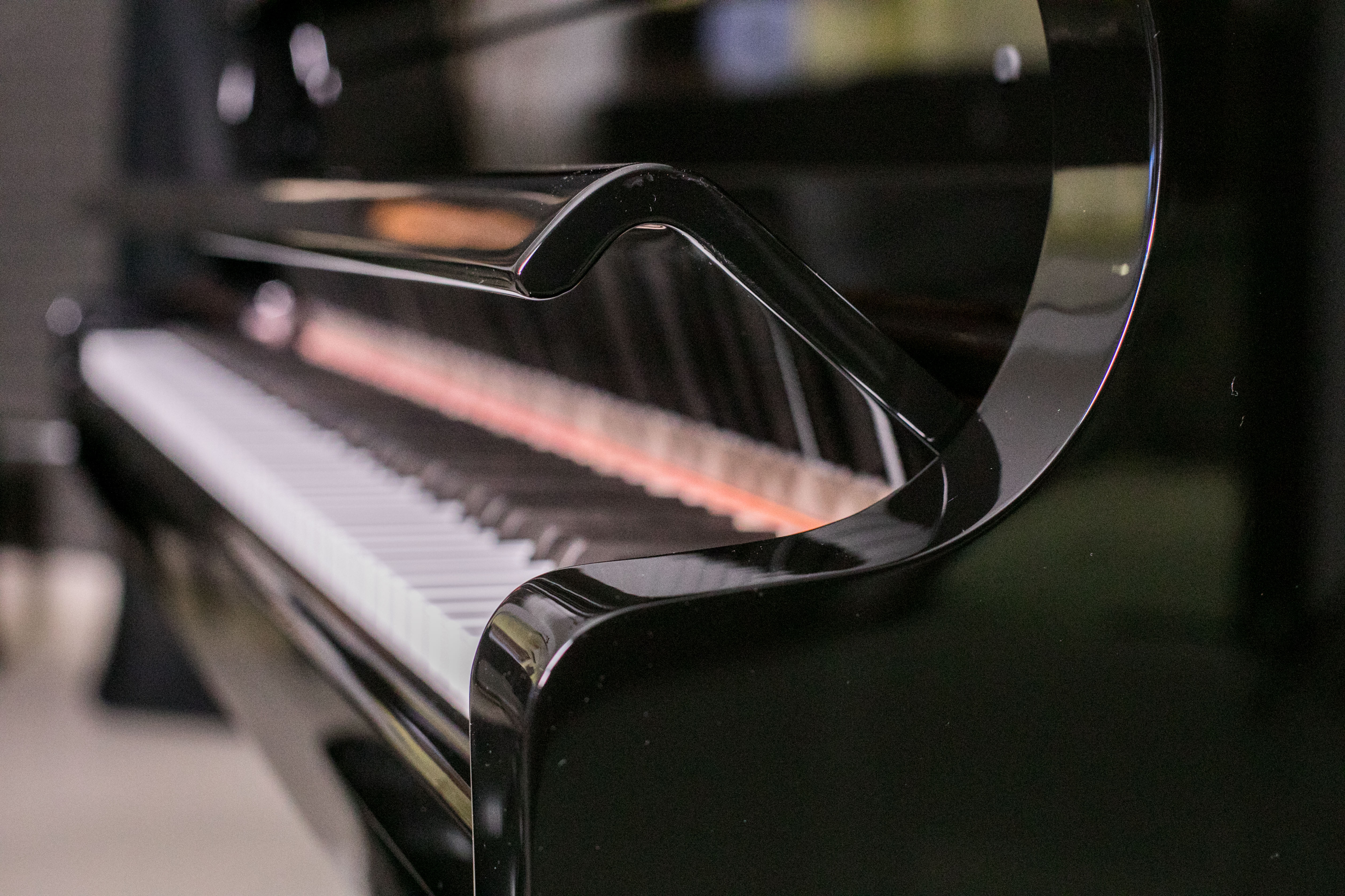 This piano features a hydraulic slow-close system, allowing the lid to close slowly and smoothly and preventing it from slamming shut.