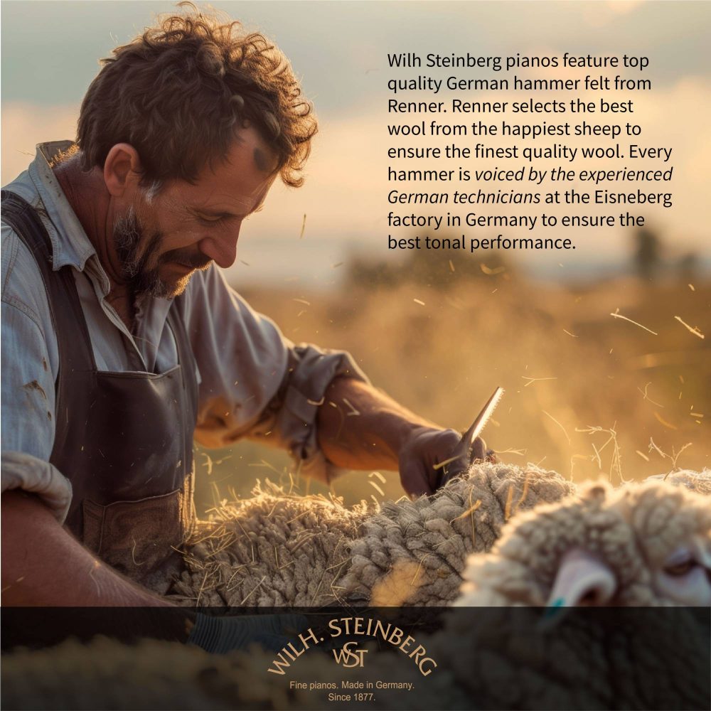 WILH.STEINBERG pianos are reputed in inheriting handcraft piano-making tradition, which are assembled from over 6,000 components, of which, 60% are made from wood. The unique characteristics of the wood imbued the finished instruments with an exhilarating sound quality and intense tonal properties that would attract global acclaim.